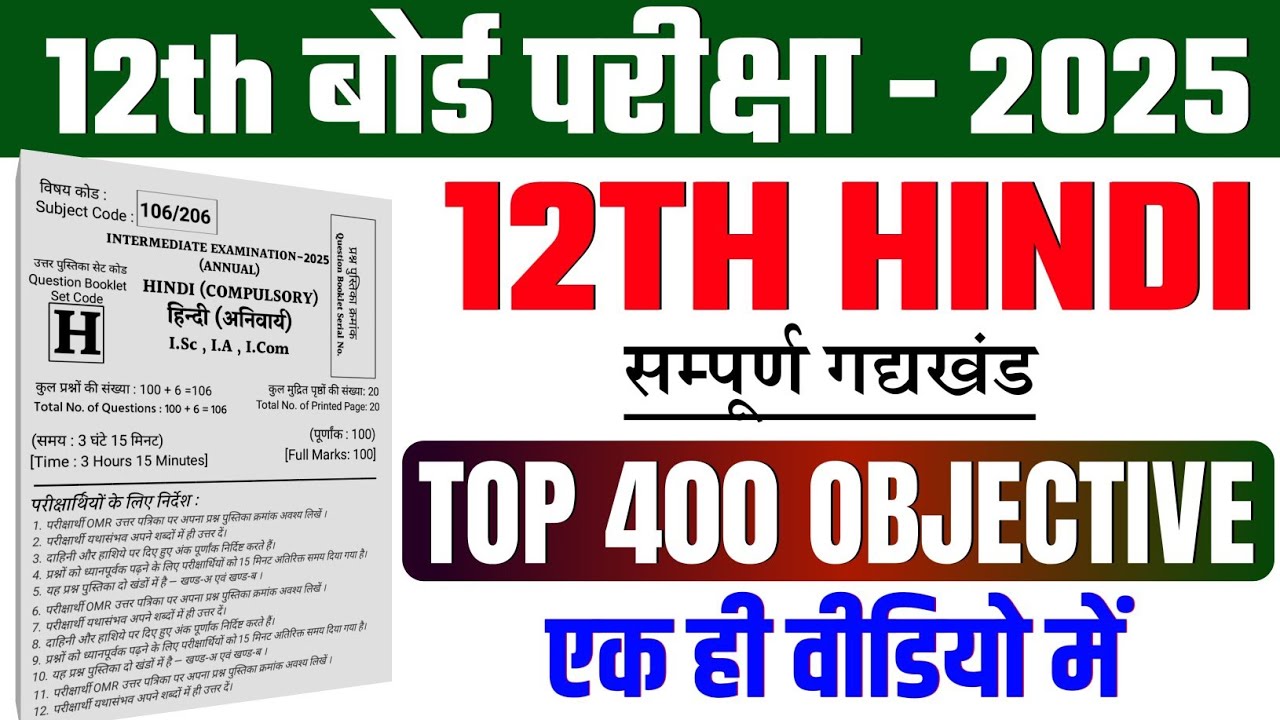 Class 12th Hindi संपूर्ण गद्यखंड Objective Question 2025 || 12th Hindi vvi objective question 2025